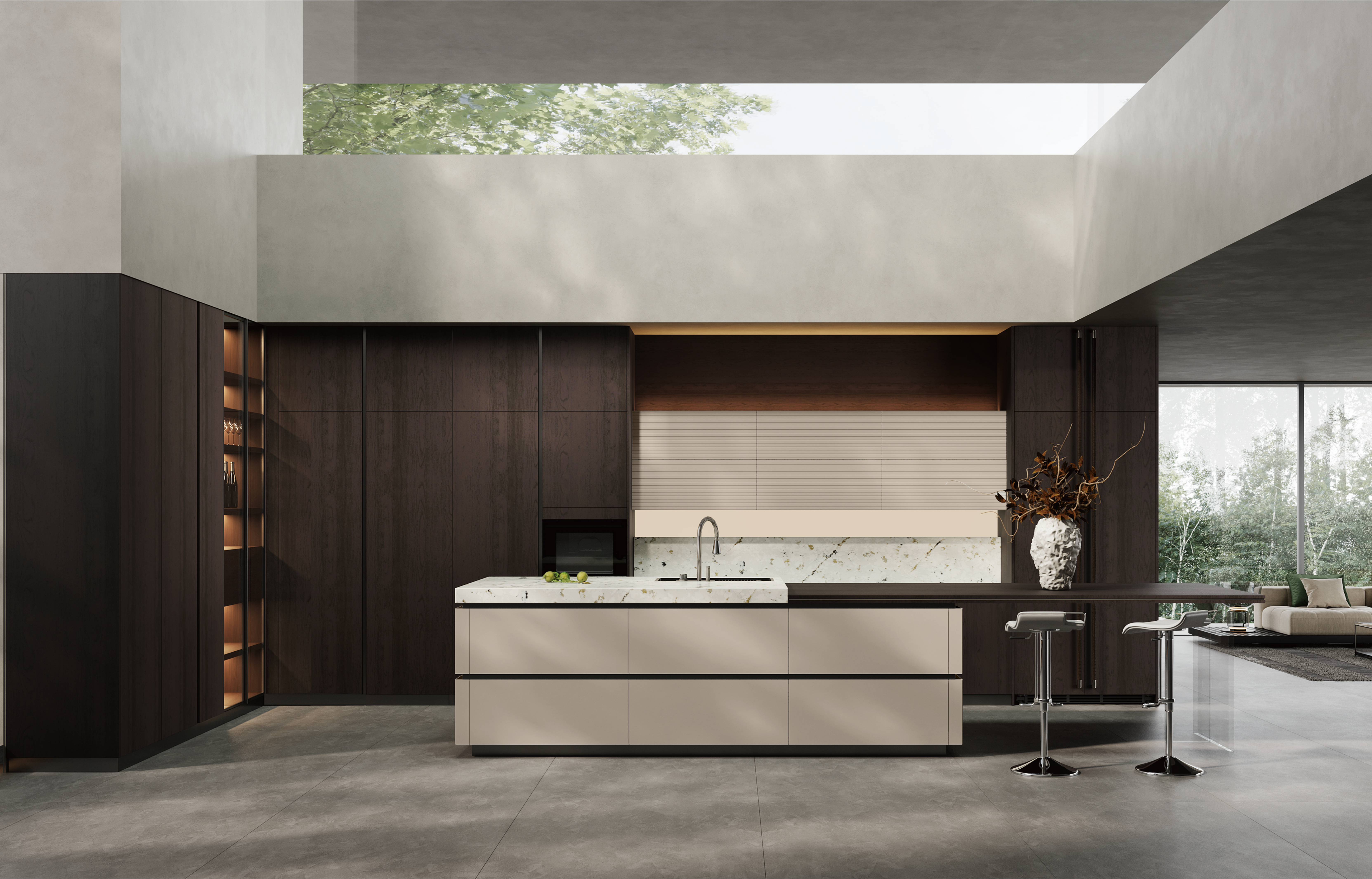 通过兴发游戏厨柜量体裁柜,定制出适合主厨下厨的烹饪区和洗涤区的舒适高度。